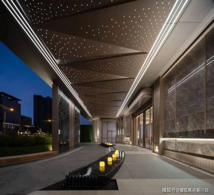 设计中借用街角广场做前场景观,达成项目昭示性和可达性俱佳。将无雨落客、大堂社交、跨界融合、多元渗透、场景营销等思维引入设计,用城市极核意蕴作为基底,刻画意料之外的奢居新场景。