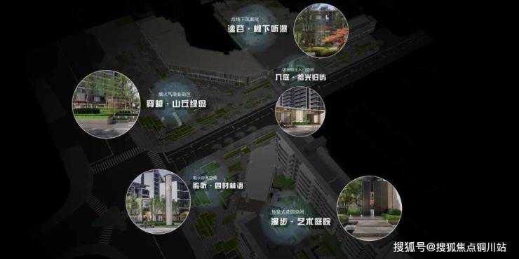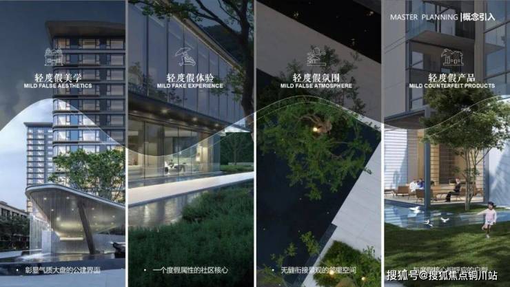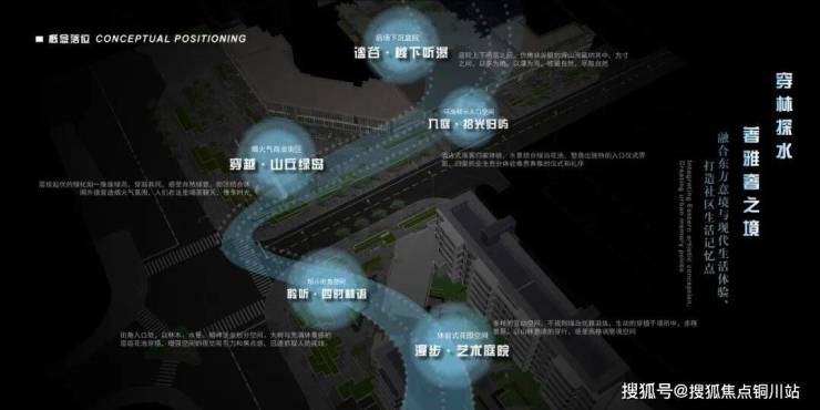 示范区景观设计概念融合东方意境与现代生活体验,将城市烟火气与小资强调融合至景观,搭建具有奢享氛围的五大生活场景,打造社区生活记忆点。