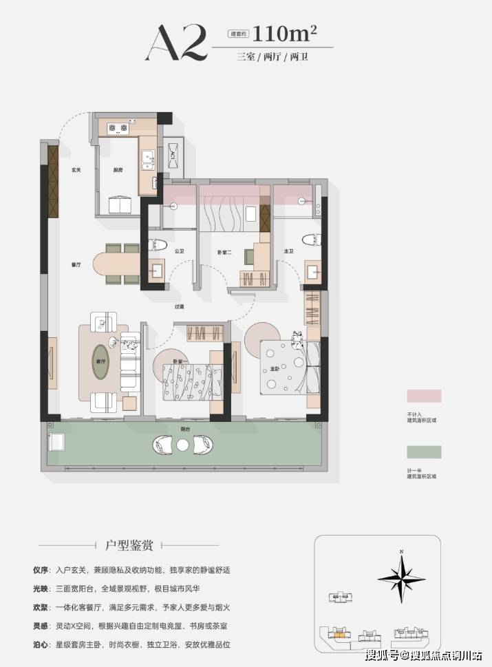 建面约110㎡中户,三房两厅两卫,性价比超高,入门级首选
