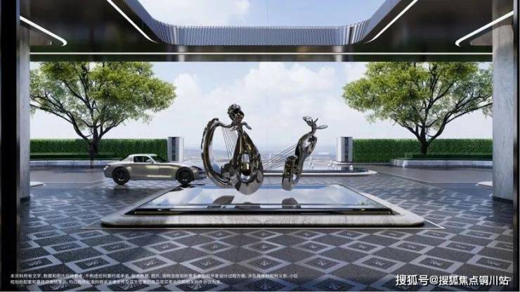 各种定制的符号,也随处可见。比如社区大门口的海上天琴雕塑、园林景观中的专属符号,就像奢侈品的logo,标定其唯一性和奢侈感。
