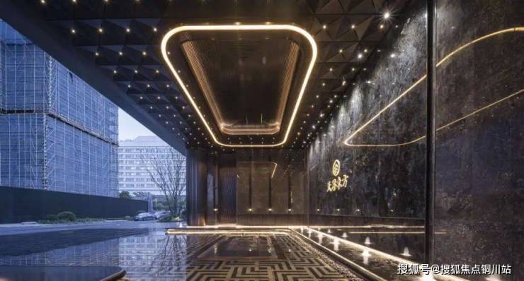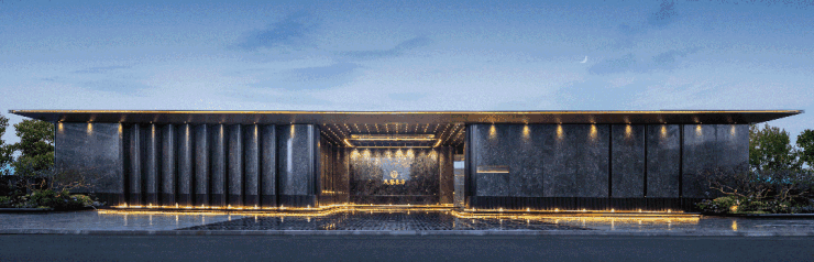 提取时尚元素,采用星光钻石穹顶,万字纹石刻地面铺贴,打造高端度假酒店式示范区建筑形象,彰显豪宅气质。