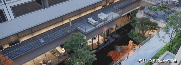 譬如它的「自在瑶台」,之前我们常见的下沉式庭院,往往强调从地下或地面层级观赏景致,而「宸庐」的「自在瑶台」构思颇具巧思。