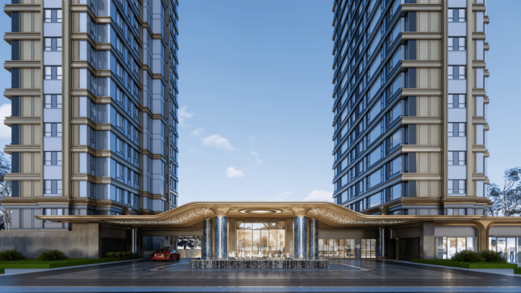 城投水西·东方天宸的大门,已经进化成了门廊。