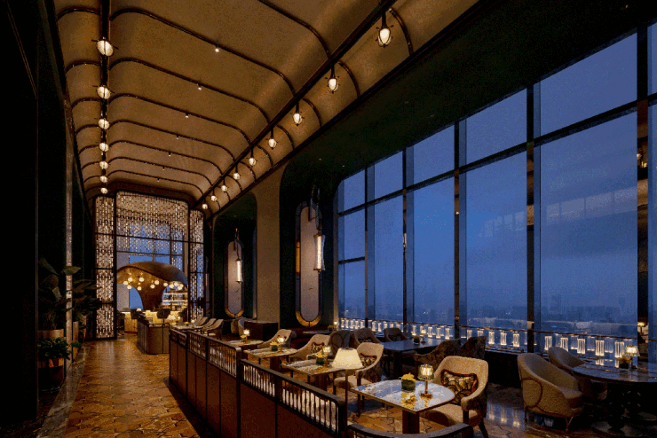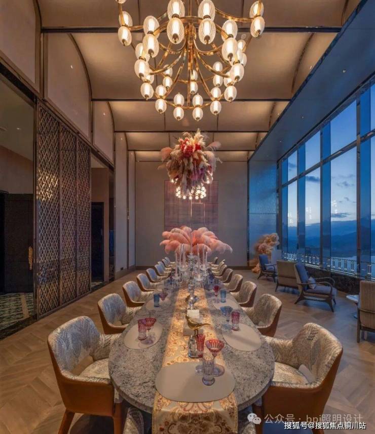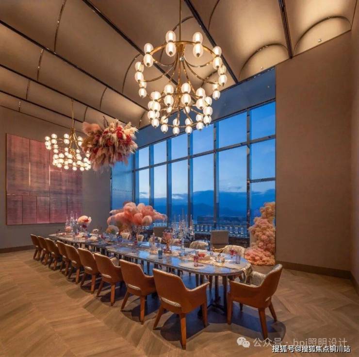 窗外,瓯江夜景与城市灯火交织成天然幕布;室内,温暖的灯光细腻勾勒出人的轮廓。室内光环境与室外夜景被巧妙地融为一体,创造出内外“互为风景”的诗意对话。智能调光系统支持多种场景的瞬时切换,从容应对从主题沙龙到私人庆典的不同需求。