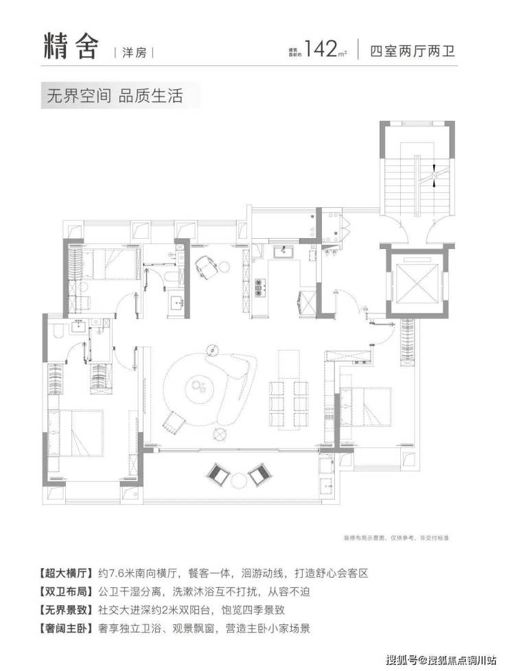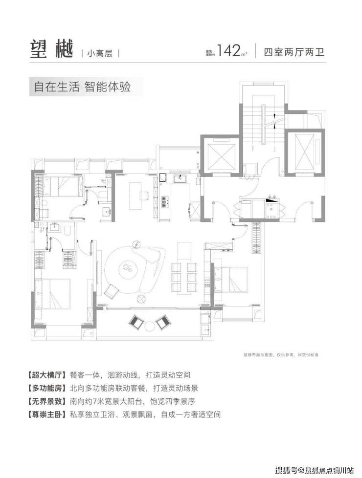 观山樾打造多功能宽厅,集亲子教育、运动健身、阅读办公等多元模块为一体。小高层建筑面积约130㎡户型约5.1米的宽厅,洋房建筑面积约142㎡户型约7.6米的洄游横厅,多一分尺度多一分场景。