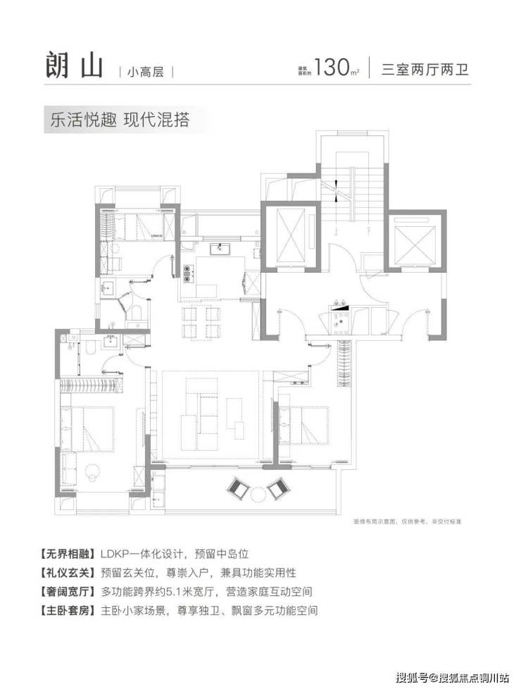 所谓LDKP,是LDK的迭代更新版本,它将家庭中的公共区域彻底释放,形成无界聚合生活场景,通透性、可视性、互动性更强。