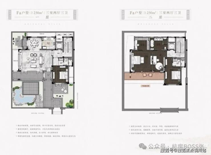 •联合GOA大象设计公司(原绿城东方设计院的凌建先生的团队),通过降低建筑密度和容积率(容积率为0.614,建筑密度30%,以中式建筑中的江南民居形态创作出特有的两层合院产品)。