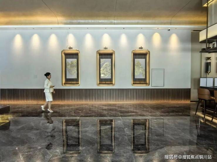 从前厅的主题背景墙到艺术雕塑《云涌》,再到超大空间的洽谈服务区;从不锈钢的精细化加工到透光云石的弧形加工,无不体现着项目对品质的极致追求。