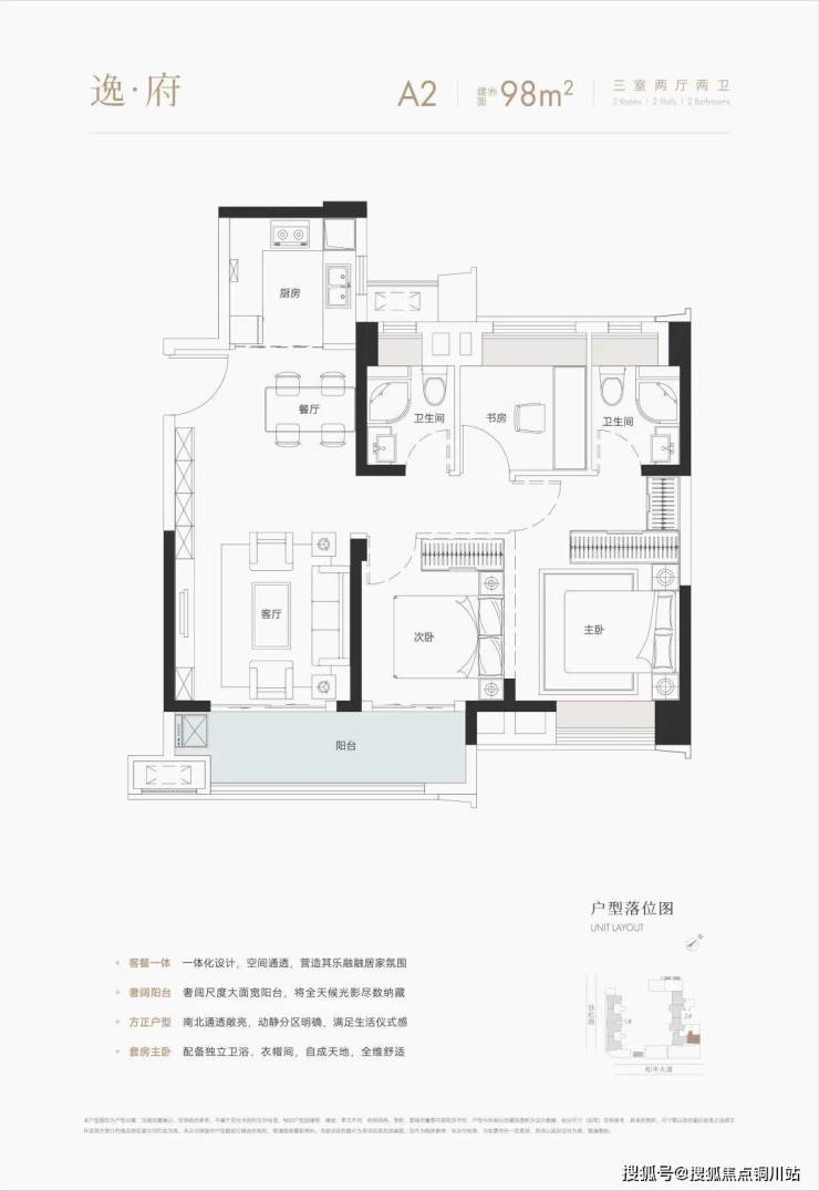 项目首开A-1地块为小户型,为整体三面宽,拥有双面宽阳台,空间利用率高。所有户型均赠送飘窗,功能分区明确,景观视线优越。
