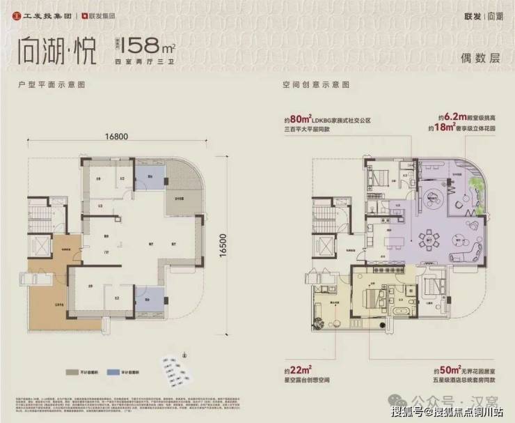目前,项目户型图已公布,户型一出就是“王炸级”的,从公示的信息看,户户有空中花园,高层约3.1米层高,约6.2米挑高奇数层、偶数层错层空中花园,宣传高层产品优化后高达约124%-126%得房率(得房率数据来源于发布会现场PPT,本文无法核实准确性,请以实际为准),叠拼产品优化后高达约133%-245%得房率。项目这样的户型设计,就是在真四代中,都是佼佼者。