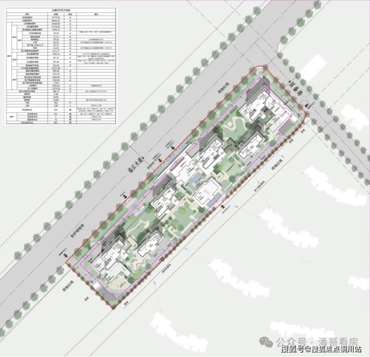 项目占地约2.58万方,总建面约8.97万方,住宅6.3万方,住宅容积率2.49.车位配比1:1.12.建筑密度30.0%,绿地率30.0%,户数402户,人数1287人