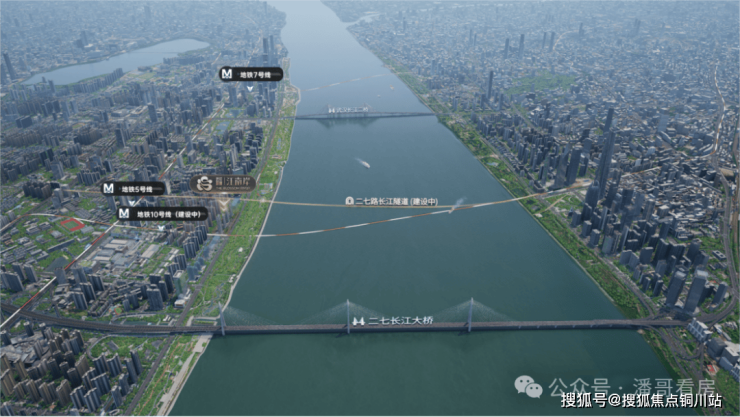 武汉城建·江南岸,项目位于武昌区铁机路与临江大道交汇处江南实业片A地块,在二环内,与二环直线距离不到1公里,靠近1.5环铁机路隧道,与武汉大道直线距离约2公里,属于武昌滨江杨园板块一线临江用地,紧邻武昌江滩,与长江直线距离仅约200米,与二七滨江商务区隔江相望,地理位置优越,是武汉公认的最佳长江观景台、也是大武昌地区唯一一个具有“一隧两桥三地铁”的超级区位。