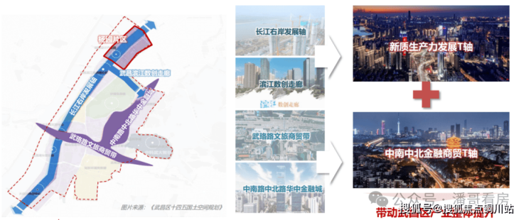 借助城市更新发展机遇,杨园片区同时将与滨江数创走廊及长江右岸发展空间协同构建新质生产力新T轴,与中南中北金融商贸T轴强强联动,实现武昌区长江沿岸两翼齐飞,共同推动武昌区产业整体提档升级。