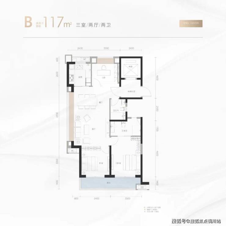 尤其建面约105㎡三房,