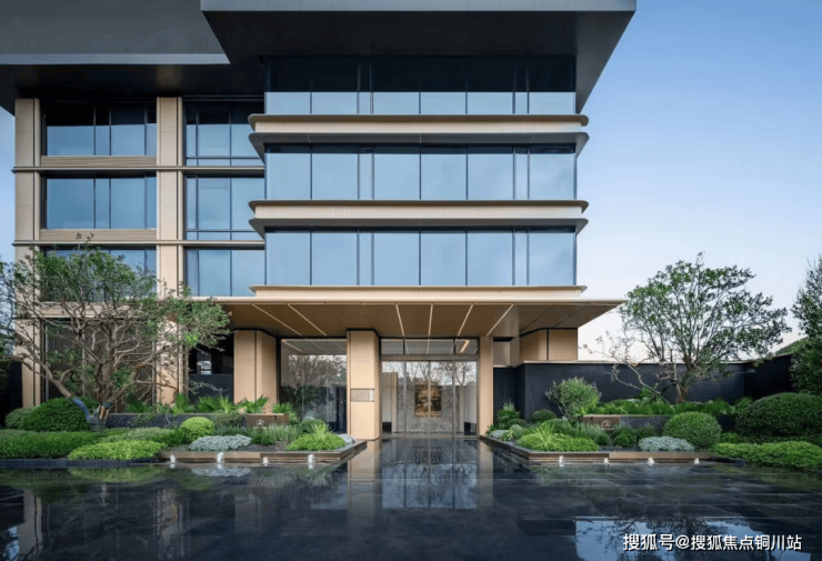 项目以“东韵西境”为设计理念,融合宁波7000年陶瓷文化基因,首创金釉陶板立面,复刻伦敦地标Principal Tower同款质感,搭配冰川瀑布无边框幕墙,实现270°环幕瞰湖视野,将建筑美学推向国际高度。