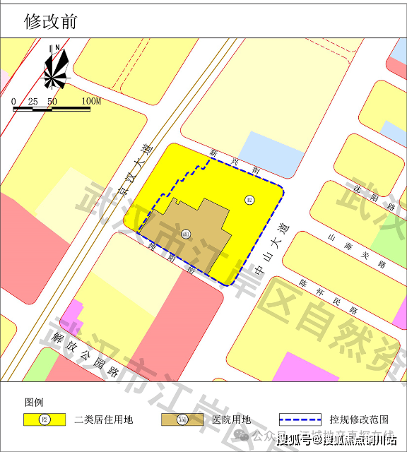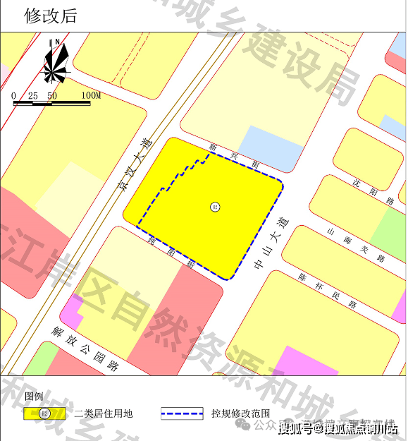 将约0.71公顷医院用地修改为二类居住用地。修改后,二类居住用地增加约0.71公顷,医院用地减少约0.71公顷,其他控制要求不变。