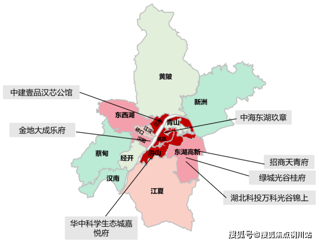 1.仅5个行政区有项目推盘,东湖高新推盘量最多,共计749套;汉阳区去化率较高,为92%;