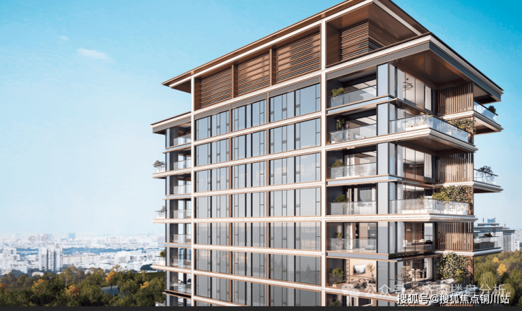 项目外立面采用的是铝板+宽幕玻璃的设计,通过古铜色铝板+黄铜色铝板+深灰色铝板+米白色仿石铝板不同的颜色变化让外立面有层次感,更显高级