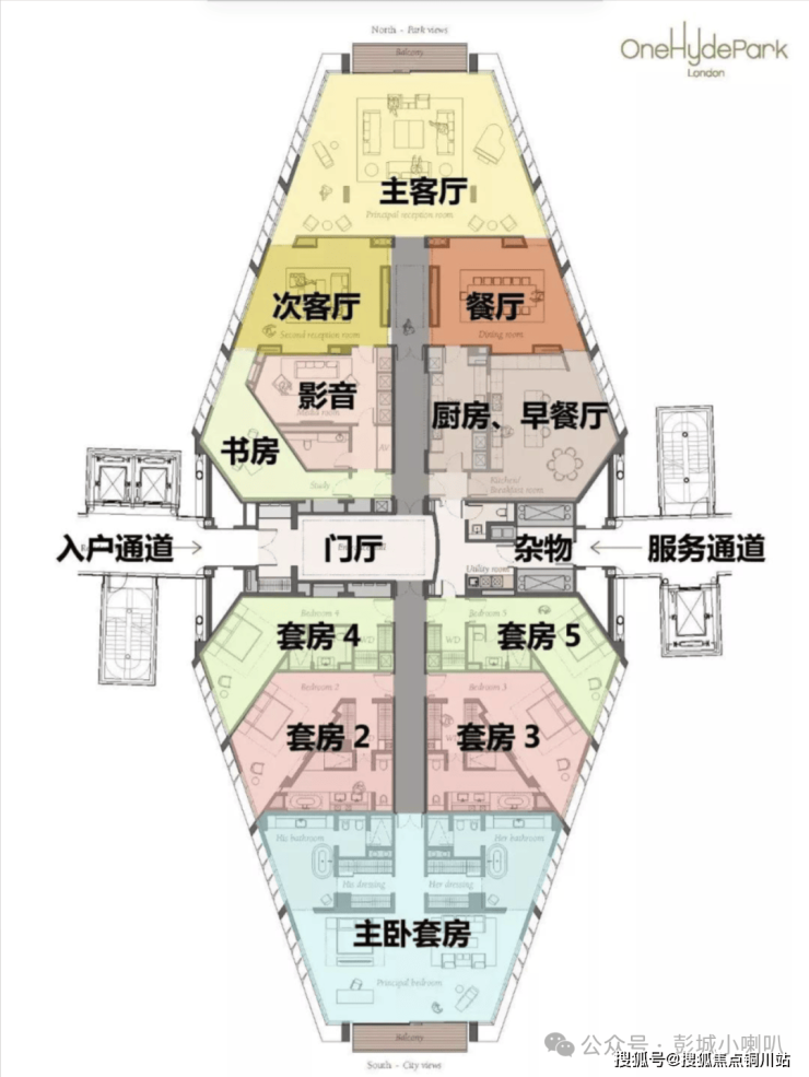 比如上亿豪宅海德公园壹号的钻石户型,双客厅、书房、影音室等公共社交空间占了50%的面积,这不仅是总裁的家,也是办公室、画廊、健康中心、私人会所,实现“效率最大化”的同时,也让总裁拥有了绝对的掌控感和极致的专属感。