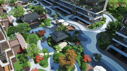 格调以北宋《西园雅集图》为灵感,打造出「一轴、二心、八庭院」的景观架构。
