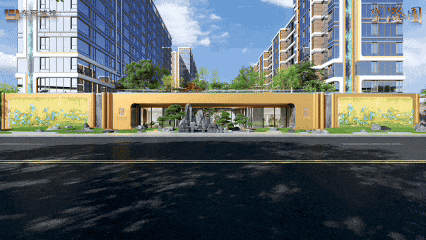这一次,格调将社区大门做成了三幅横向展开的「画卷」。