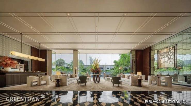 重点是作为一个整体抬高约3.7米的项目,地面层的生活馆、茶室,负一层的私宴厅、棋牌室、健身房、恒温泳池、瑜伽室,都朝向风景敞开。