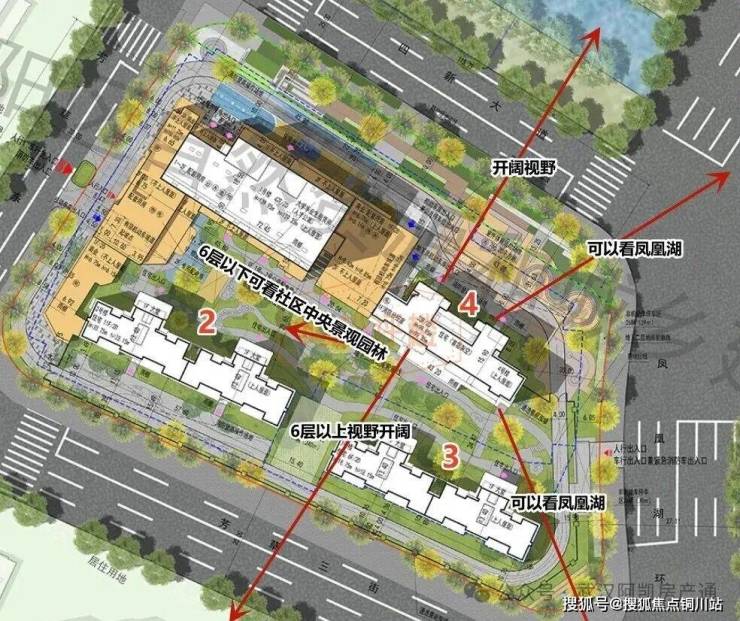 更绝的是,项目东侧一线临凤凰湖,南北向都有观湖视野,这意味着,除了极少数6楼以下中间户看不了湖,其它房源窗外都有不错的湖景景观!