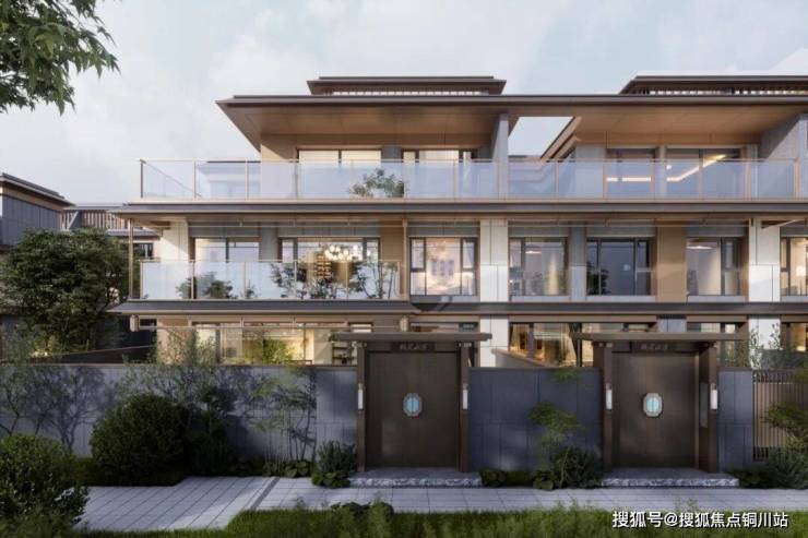 项目立面延续传统宋式建筑的重檐、撺帘杆等元素,以瘦金体般纤细挺拔的线条勾勒立面,搭配浅灰、米白与仿木色淡雅配色,融入现代视觉手法,再现新宋式美学绘画风格,品质可见一斑。