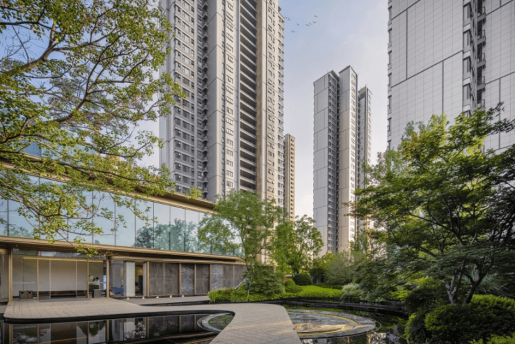 璟上的园林也从来不是绿植的堆砌,以大片镜面水景、多层叠水的下沉式庭院为点缀,打造约1万方的超尺度中央景观,经过探索南京本地气候特点和人居需求,选用名贵苗木,以自然美景与奢居场景结合,围合生活诗意,全家人在此从容栖居。