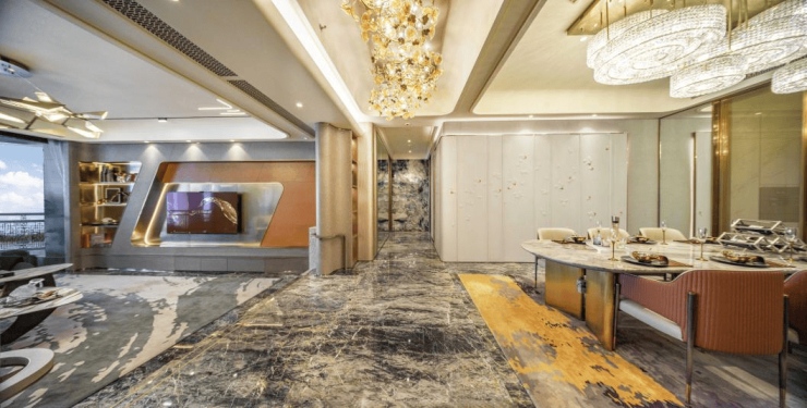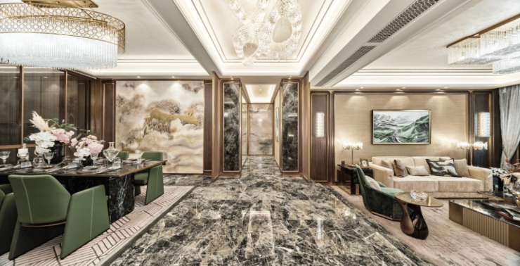 以艺术美学与极致质感为标准,严选全球顶级材质。仅仅以石材来说,以最佳视觉艺术、使用质感为标准,就有10多道选材工序。