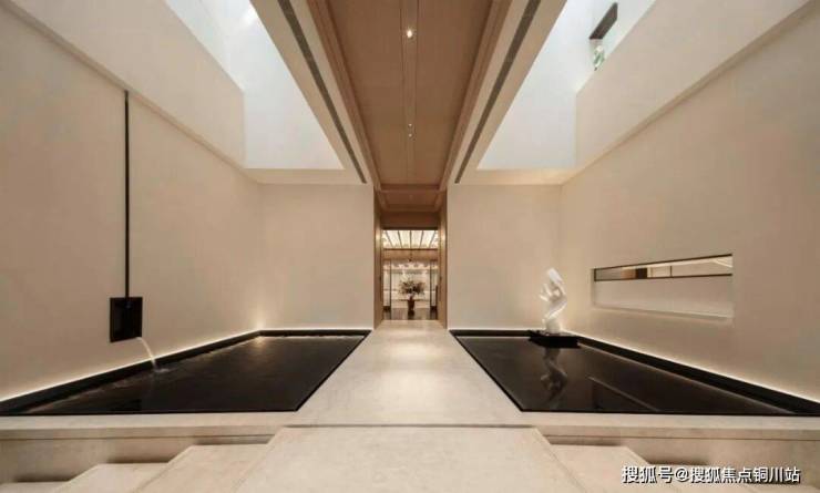 拱廊与室外灰空间衔接景观水院,结合礼序归家水庭与游廊式路径,共同构成“四进庭院”的归家体系。通过精心组织路径与尺度转换,营造出小而精、序列丰富的场景体验。