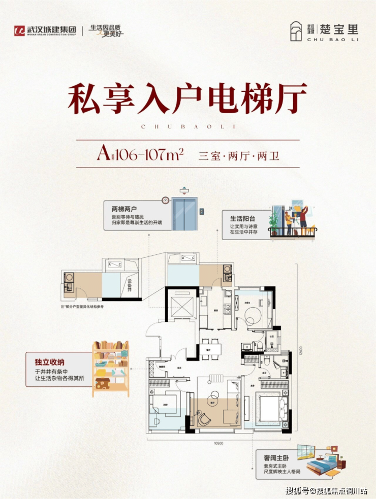 楚宝里的户型设计,以“人性化”为核心:充分考虑收纳需求,户型配备独立储藏间或者生活阳台,跟同区域、同面积段的产品比,收纳容量提升了30%以上。