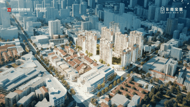 武汉城建·楚宝里项目位于汉口历史风貌区核心地段,中山大道与前进二路交叉口,正望百年民众乐园的鎏金岁月,毗邻国广恒隆、M+商圈等商业中心,以23万方里分综合体,倾力打造的文商旅居于一体的综合性城市更新示范区。