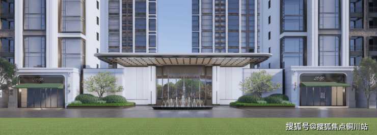 一庭:【瑰丽门庭】酒店式豪宅美学界面,以金属细节和石材彰显贵气,定制化艺术铺装彰显入口门庭;奢华大挑檐,中心设计艺术水景,增加入口仪式感;结合门楼落客等候区设计山水庭院,由恢宏门庭到自然花园,华丽向自然的过渡,彰显豪宅礼序。