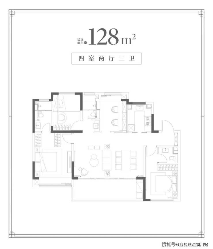 建面约128㎡,4室2厅3卫
