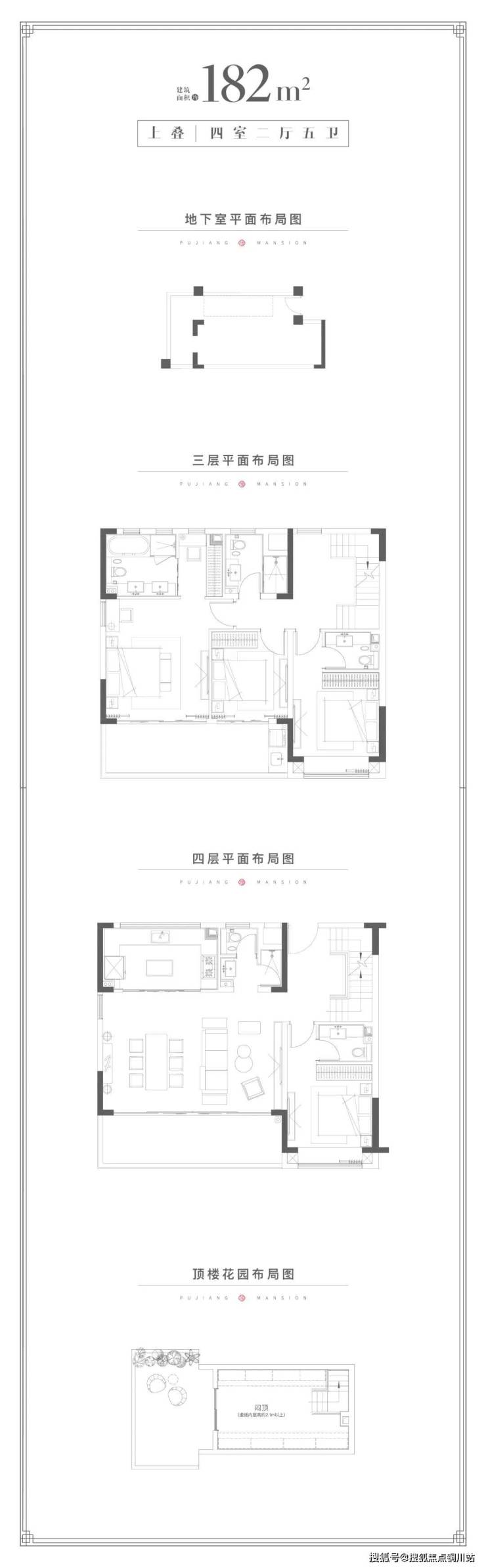 ●叠加户型-星湖院建面积约182㎡ 上叠4室2厅5卫