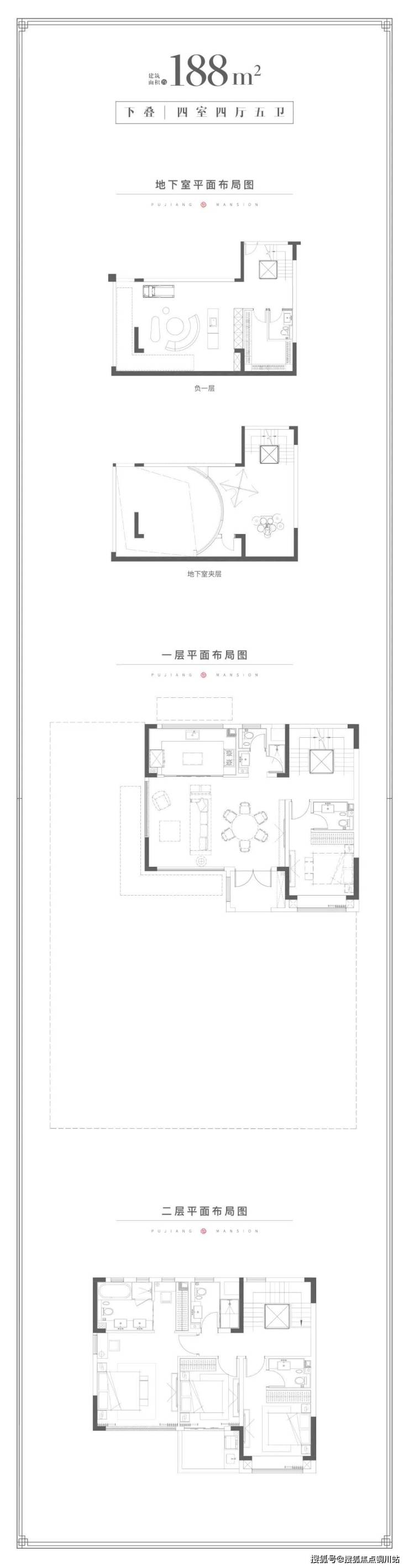 ●叠加户型-揽湖院 建面约188㎡ 下叠4室4厅5卫