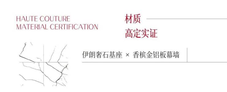 建筑立面设计采用高端定制材质,从用料上展现大区品质。基座采用伊朗水墨玉奢石、保加利亚沉香米黄石材、锻砂法兰金不锈钢;主立面采用蓝灰色玻璃、香槟色铝板、灰色涂料等材质。