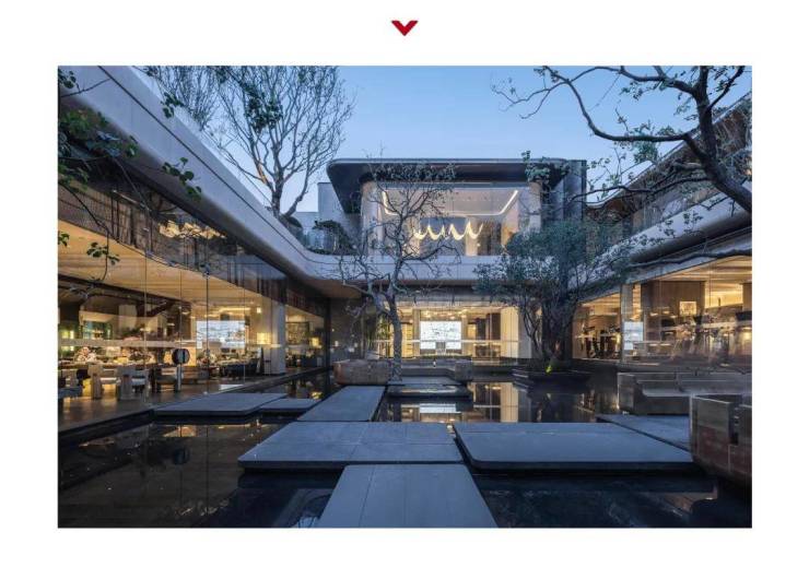下沉会所采用洄游式空间序列,递进的院落式设计强化归家仪式感。