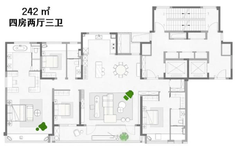 无论是实用性、创新性,还是舒适性,狮山金茂府的约242㎡户型都会是终极改善客心中不可多得的“梦中情房”。
