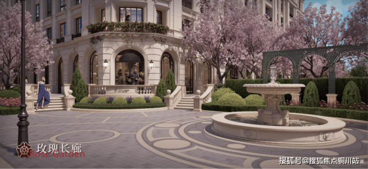 浪漫街角的【女王花园】,融和了克罗耳《玫瑰》与马恩河谷玫瑰园的金属拱券等摩登情境,以法式拱券、玫瑰藤架和口袋广场,成为女王户外社交主场。