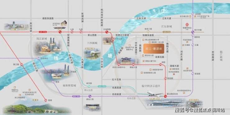 潮颂府位于大会展中心周边1公里的核心区域,牢牢占据临空经济示范区核芯,不仅远见板块崛起,其交通优势更是堪称“王炸”,将杭州繁华版图紧密缝合。