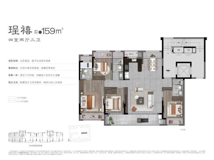 还有全盘最稀缺的建面约159㎡4房2厅3卫,尽展大宅尺度,为改善而来。