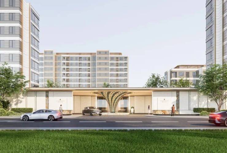 立面上借鉴一线城市豪宅标准,采用最前沿的铝板玻璃幕墙设计,最大程度保证室内的采光,宽敞且通透;大门是星级酒店同款的环岛式,中间的金属雕塑融入艺术巧思,不乏华丽调性,让人一眼即惊艳!