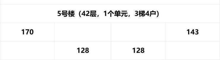 国铁城投国樾滨江已推出3号楼,5号楼为44层,1个单元,3梯4户,分布户型为建面约128-170平户型。