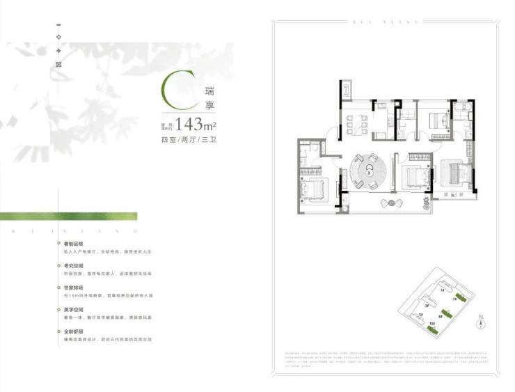产品方面,瑞香园直接定位纯粹改善,主力户型建面约109、117、143㎡,目前户型图与样板间,已经全部公开。