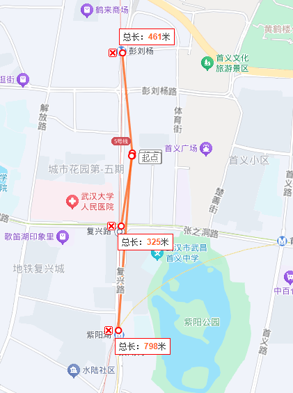 西侧紧邻复兴路和黄鹤楼隧道出入口、还有城市花园靠小区、武汉大学人民医院等;