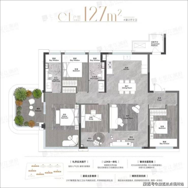 相较于102㎡的起步户型,114㎡“户型堪称是舒适型升级,延伸了更多功能空间:尤其是独立家政间,利用设备平台改造而成,实用性高。全飘窗设计,既提升景观视野面,又能将高附赠率顶格拉满。不少看房者直呼“太会了!”