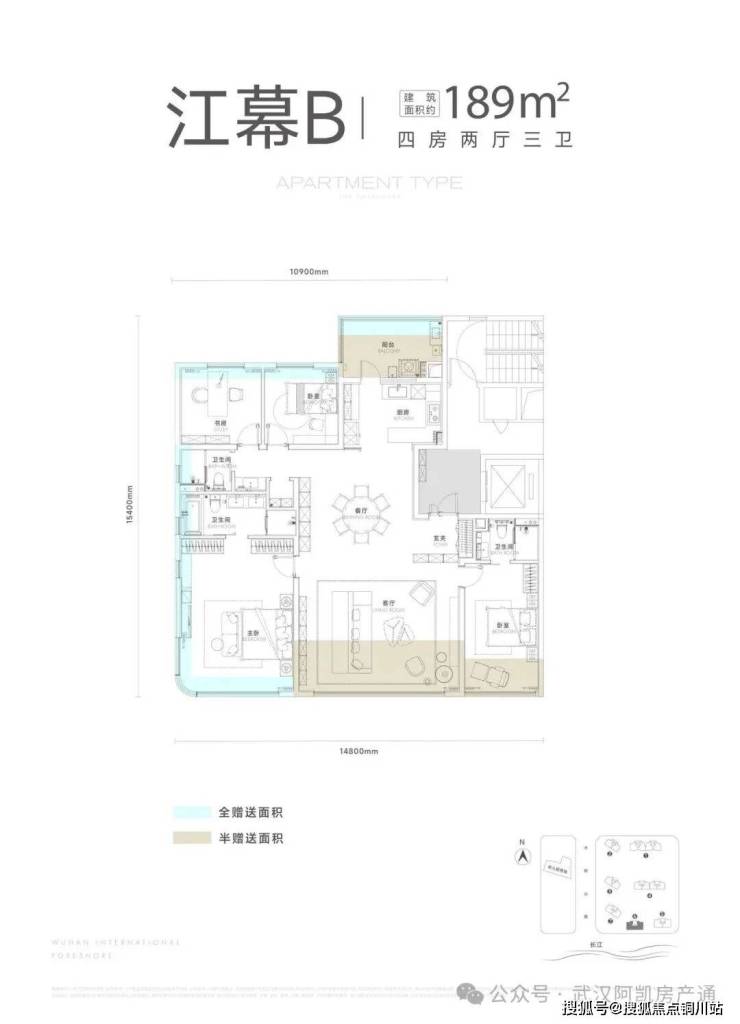 项目一期包含7栋住宅,北区1-2栋,南区3-7栋,其中5-6-7栋(主推169-189㎡)位于项目最南端,可以一线无遮挡看江。