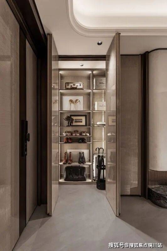 约5平玄关区域搭配约2平的独立储藏间,婴儿车、手推车、男主人渔具、高尔夫球杆和出差的行李箱,都能井然有序……